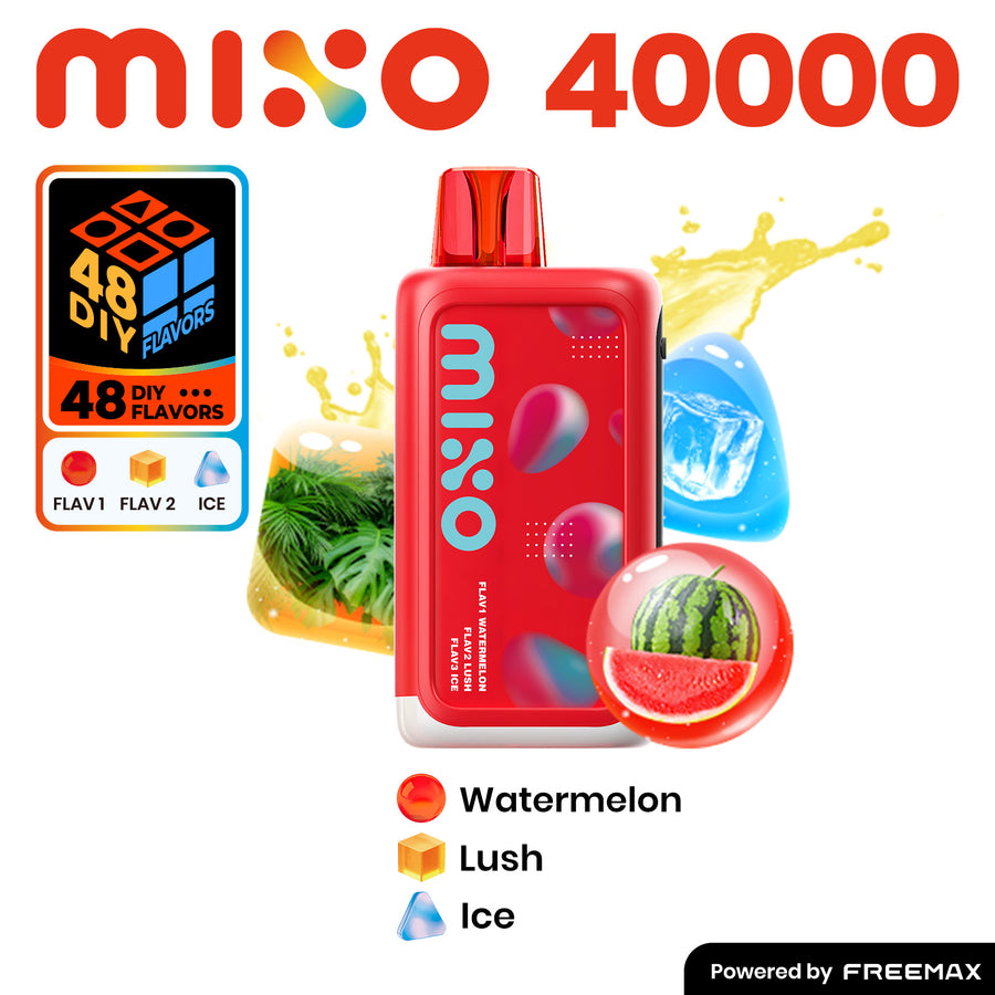 The Mixo 40k Puffs is a powerful and innovative vape, containing 40,000 puffs with 4 unique flavor combinations. With a 1300mah battery and adjustable airflow, it also features a side full screen for easy use. Ideal for adults looking for a satisfying nicotine experience, this product is powered by Freemax and comes in a convenient 5ct display box.
